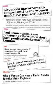 “What really peaks a lot of people is when transactivists say ‘women have penises’. So the stickers were to try to provoke them to say that: because when they say ‘it’s transphobic to say women don’t have penises’… well, 99% of the population think it’s obvious that women don’t have penises!”