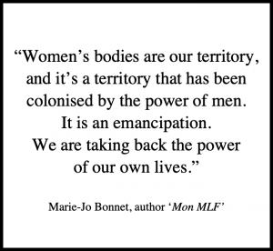 Well, in the words of Marie-Jo Bonnet of MLF, “Women’s bodies are our territory, and it’s a territory that has been colonised by the power of men.”