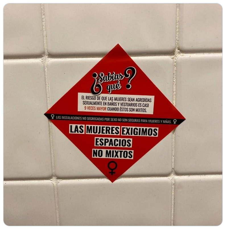 In April, #stickerwoman was busy in public toilets in Madrid, warning women & girls that sexual assaults are 9 times more likely to happen in mixed-sex spaces.