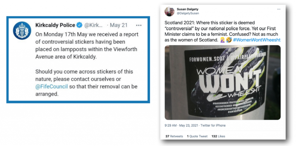 “Only someone who wants to to destroy free thought could say that a sticker that states that a woman is an adult human female is an instrument of a hate crime.” commented one twitter user.