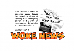 There was a short delay due to technical issues, Olly was running late and the cinema equipment didn’t like working with a Macbook, but eventually we were ready to go. Posie welcomed us to ‘Woke News’ and introduced the first speaker, Meghan Murphy.
