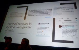 Jo then showed us a slide of some of the online abuse she had received from transactivists.