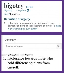 She reminded us of the definition of ‘bigotry and asked “Who is committed not to engaging or discussing.. who is committed to their own ignorance to the point that they would rather stand outside and shout lies instead of coming inside and listening to what we are saying; engage respectfully, as we always do, and try to come to an understanding?”