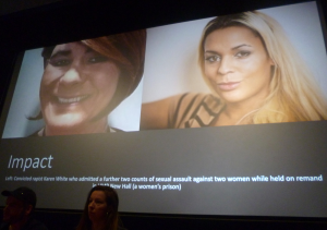 Bartosh referenced the cases of Tara Hudson (right) and Karen White, men who were placed in women’s prisons, and how these cases were dealt with by the media.
