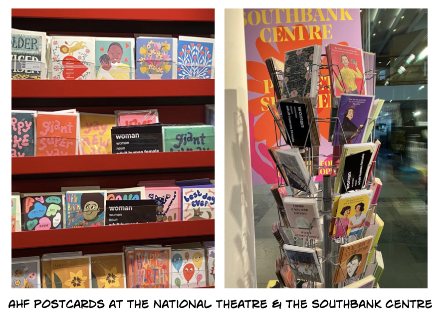You can buy Adult Human Female postcards from the ‘Standing for Women’ store.