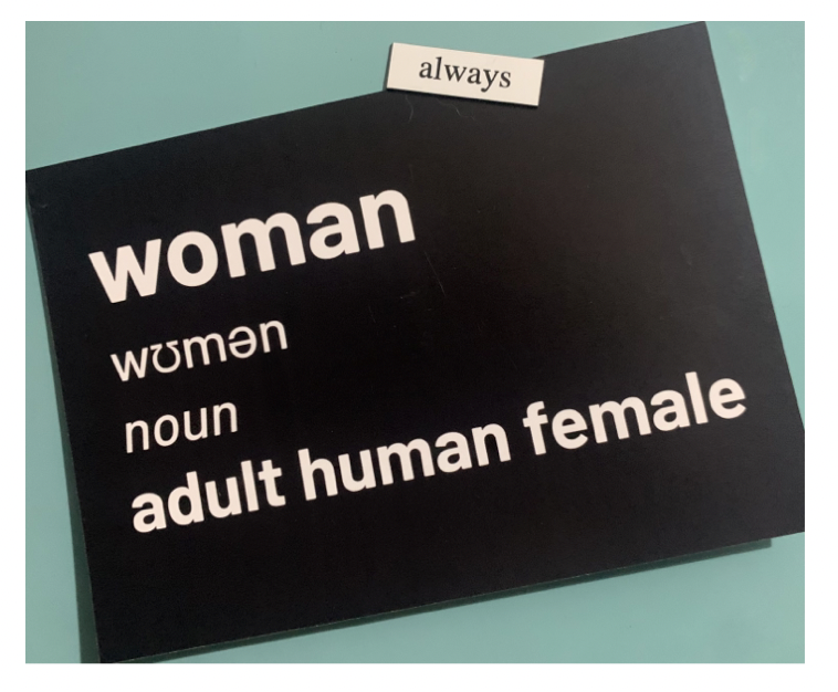 You can buy Adult Human Female postcards from the ‘Standing for Women’ store.