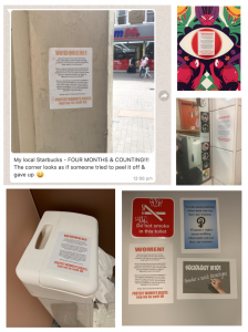 Of course, when stickers are photographed and these images are tweeted or circulated on social media, the impact is magnified. Women have always been very creative in where they sticker to make the message even clearer.