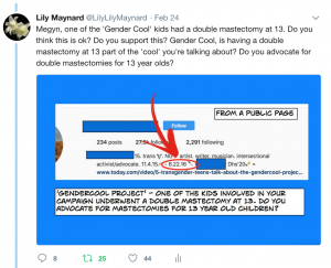 Gender Cool is indeed ‘buzzing around the country‘, having been featured in the New York Times, on ABC News and on Meghan Kelly Today. Though I, and others, have asked Meghan Kelly to comment on her promotion of this group, she has not responded.