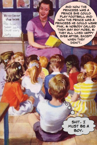 I’ve written before about the brightly coloured picture books available in libraries and for schools to download. Here are just a few books that tell a boy he can be a girl and a girl she can be a boy.