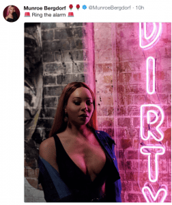 Trans-identified male Munroe Bergdorf- who has undergone breast implants, facial feminisation surgery and says he would, aged 8, have “leapt at the opportunity”to live ‘as a girl’, sent an open message to children on Twitter, telling them to contact him by direct (private) message if they wanted to talk.