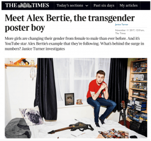 Alex Bertie is the famous YouTuber I refer to in my original piece ‘A Mum’s journey Through Transtopia’. Alex undoubtedly has a huge influence on young women who are questioning their own gender identity.