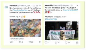 Here are two of Mermaids’ tweets re its presence at ‘Pride’ marches in 2017. Both have since been removed from Twitter.