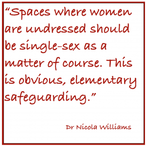 The last comment, so sad, sent me in search of an article I had read about the number of women who suffer miscarriages in public. I eventually found it on the Fair Play for Women site and you can read it here. Be warned, it is deeply moving, it made me cry. It also made me angry that so many men would be so flippant about women’s need for single-sex spaces. The writer concludes: