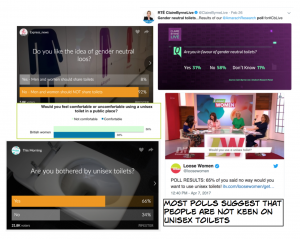 A male respondent answered the question, ‘Who actually wants gender neutral toilets?’ with:
