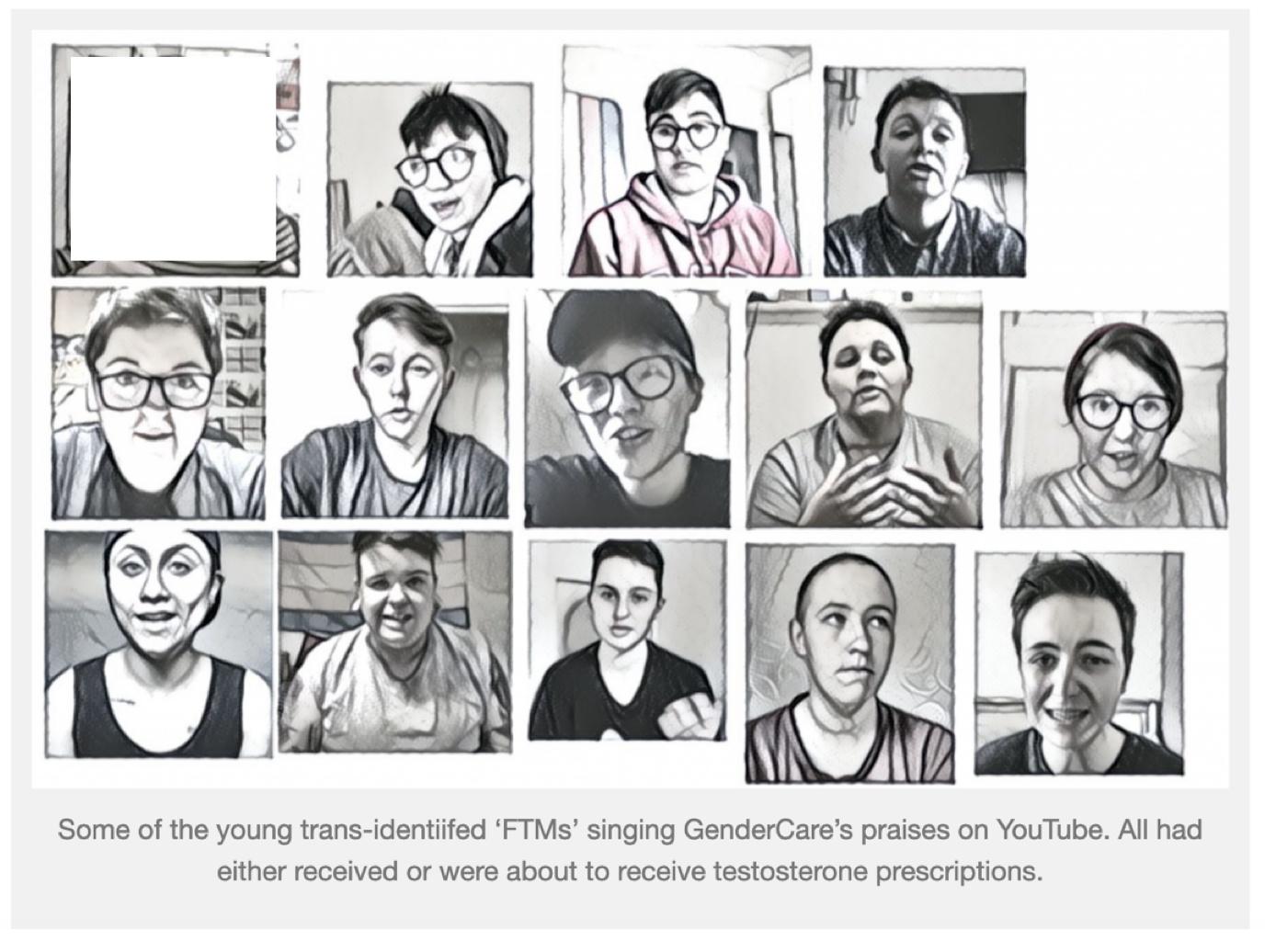 Two thirds of Lorimer’s patients are ‘transmen’, young women who believe themselves to be men. These (modified) pictures are taken from their YouTube videos: