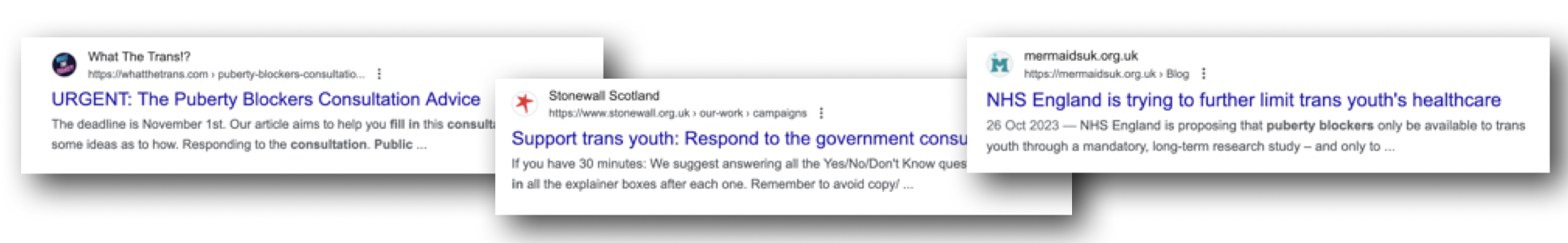Parents may have spoken to Mermaids, or Gendered Intelligence, or Allsorts, or other groups who make no secret of their support for puberty blockers.