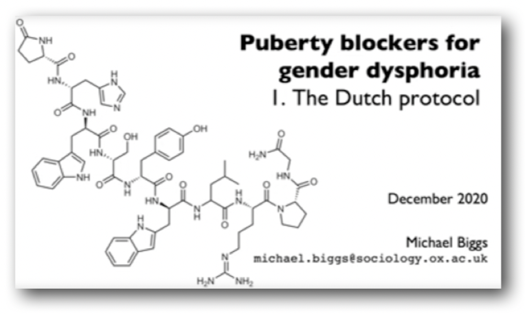Biggs notes, in his video, that the eligibility criteria of the Dutch Protocol (gender dysphoria from childhood, increasing at puberty, psychological stability and a supportive family) is rarely adopted in England.