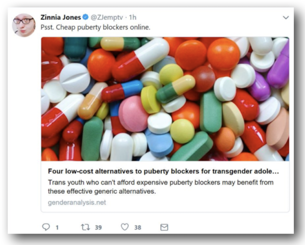 But I digress. Hapless young women who have reached the age of majority are not the concern of this piece. Nor even are the thirteen year olds on testosterone. We are, after all, here to focus on puberty blockers, not the cross-sex hormones that invariably follow them.