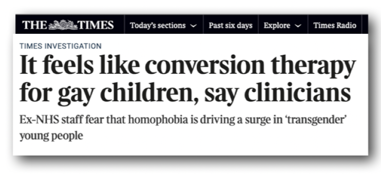 In 2019, five clinicians, who had resigned from GIDS due to concerns, spoke to the Times. The paper learned that so many potentially gay children were being sent down a clinical pathway that there was a dark joke among staff that “there would be no gay people left”.