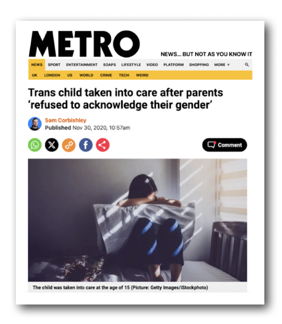 And if the fantasy is not indulged at home and the wrong tongues tell tattle tales, they may even find their trans-identified child removed from the family home and put in care.
