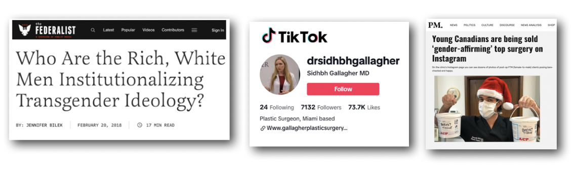 Social media is now home to a score of wealthy, fashionable, ghoulsih influencer ‘gender surgeons’ such as Sidbh Gallagher and Giancarlo McEvenue and their thousands of teenage fans.