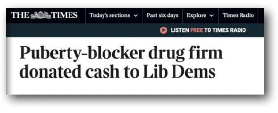 Here in the UK, a pharmaceutical firm that markets GnRH analogues gave a cool £100,000 to the Liberal Democrats in 2019.