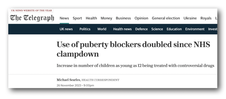 In November 2023 the Telegraph reported that despite the previous summer’s announcement, the number of children prescribed puberty blockers had doubled since the National Health Service promised to curb the practice.