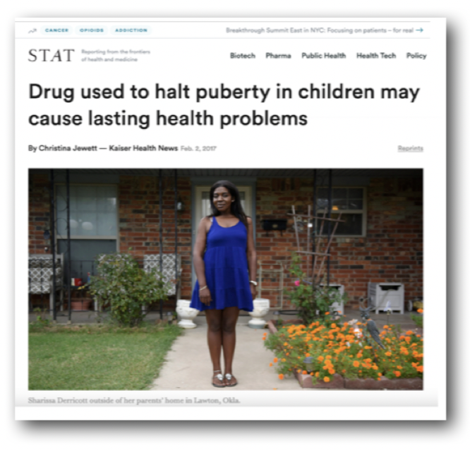 In 2017 it was reported in the press that many young women who had been given GnRHs (aka Lupron) when children, for precocious puberty or to increase their height, had been struck with a variety of health conditions. Some developed osteoperosis or degenerative disc diseases. One twenty-six year old needed a hip replacement. More than 10,000 adverse event
