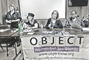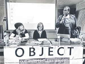 A woman said it was an overwhelming “international, global, male sexual rights movement intent on exploiting children, girls and women” and that we all needed to start organising together against it.