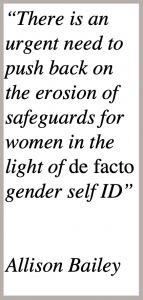 The idea that a man should be able to self-identify as a woman is ‘absolute madness‘ and Bailey described Stonewall’s ‘acceptance without exception’ policy as ‘a big sign welcoming every predatory, unhinged man who hates women to come forward with impunity… an obscene violation of our hard-won rights’.