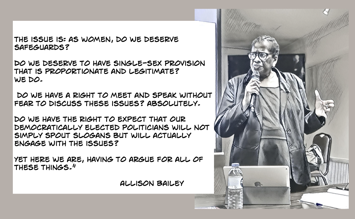 She concluded that movements can enact change very quickly, citing the importance of putting pressure on our MPs and politicians, and urged those present at the meeting to come out as gender critical.