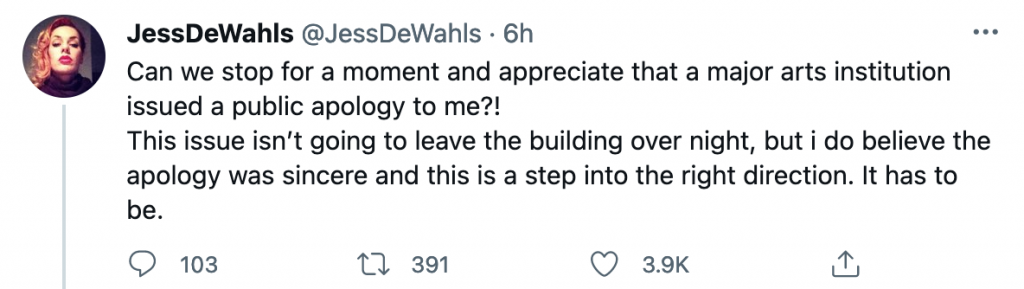 So yes, Adam Koszary did get in his snidey little tweet – but the RA did have to apologise to Jess de Wahls, and that’s the win.