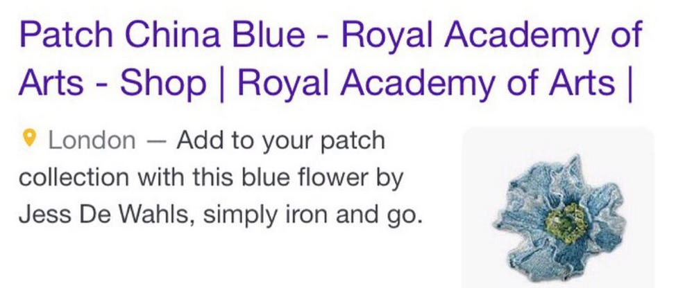 Nothing less than a blue embroidered flower. Avert your eyes lest ye should receive the full force of its transphobic hatred. Those trying to find it via the RA website are now are met with this notification:
