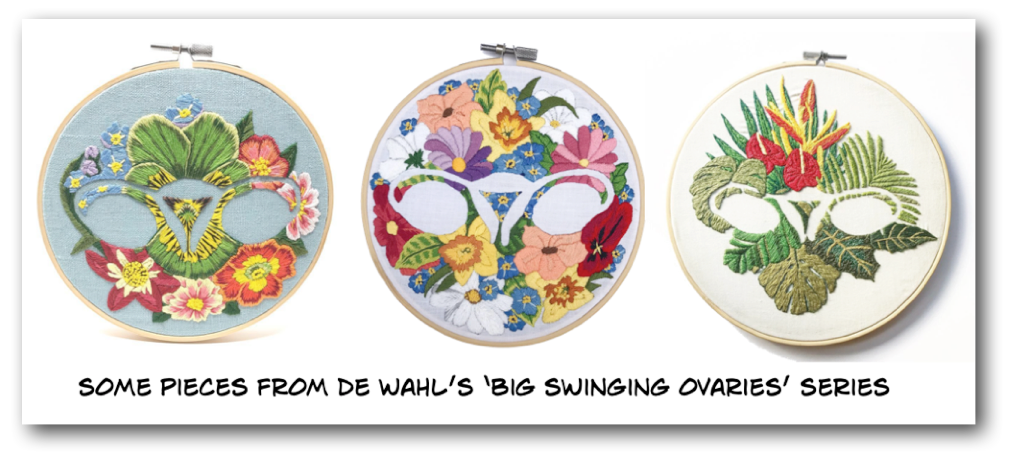 The awful, oppressive and dangerous nature of de Wahls’ opinions and work was brought to the attention of Instagram by fellow embroidery artist Jessica So Ren Tang (she/her) who told 48K followers: