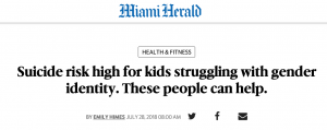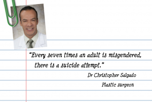 In July 2018, in an interview given in the ‘Health and Fitness’ section of the Miami Herald, entitled ‘Suicide risk high for kids struggling with gender identity: these people can help’, Dr Christopher Salgado told journalist Emily Himes: