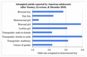 In his article ‘Attempted suicide by American LGBT adolescents’, Biggs suggests that previous evidence on suicide attempts among trans-identified youth has been ‘methodologically flawed’.