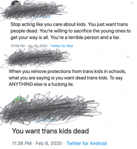 “I’m transgender ftm myself and under 18. This is actively taking away my right to health care and putting my own life in danger”