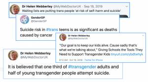 On her ‘GenderGP’ website, Webberley refers to her patients as “a marginalised group of people at high risk of suicide.”