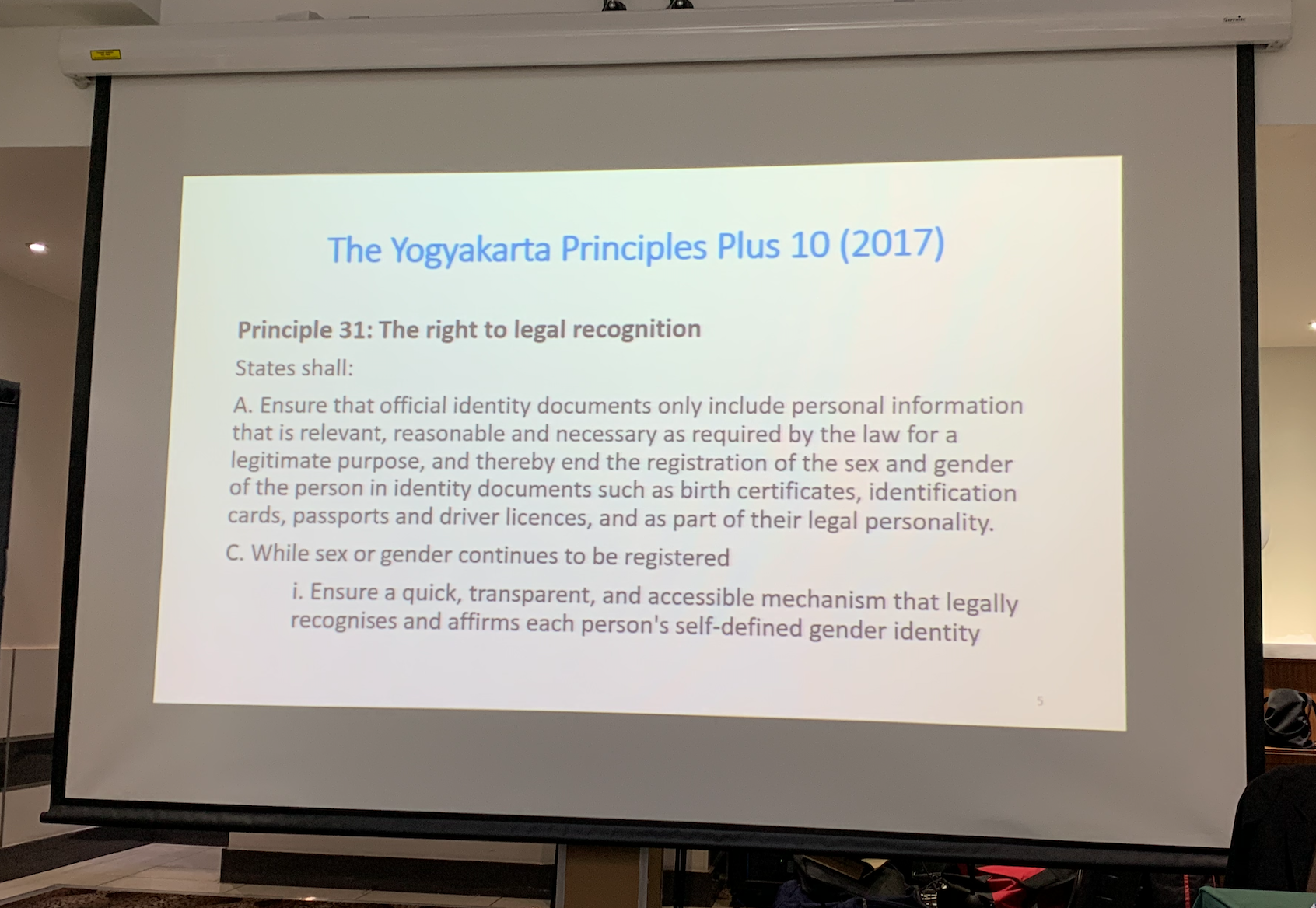 The plus 10 principle makes it clear that the ultimate aim is the eradication of all social and legal markers which denote sex. The Women and Equalities Committee carried out an enquiry into law and policy making around gender identity. They were told that the Yogyakarta principles were best international practise, and recommended self-declaration.