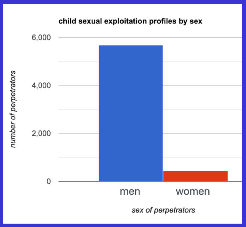 Police recorded child sexual exploitation profiles published in 2017-18: of 6,107 offenders, 93% were male.
