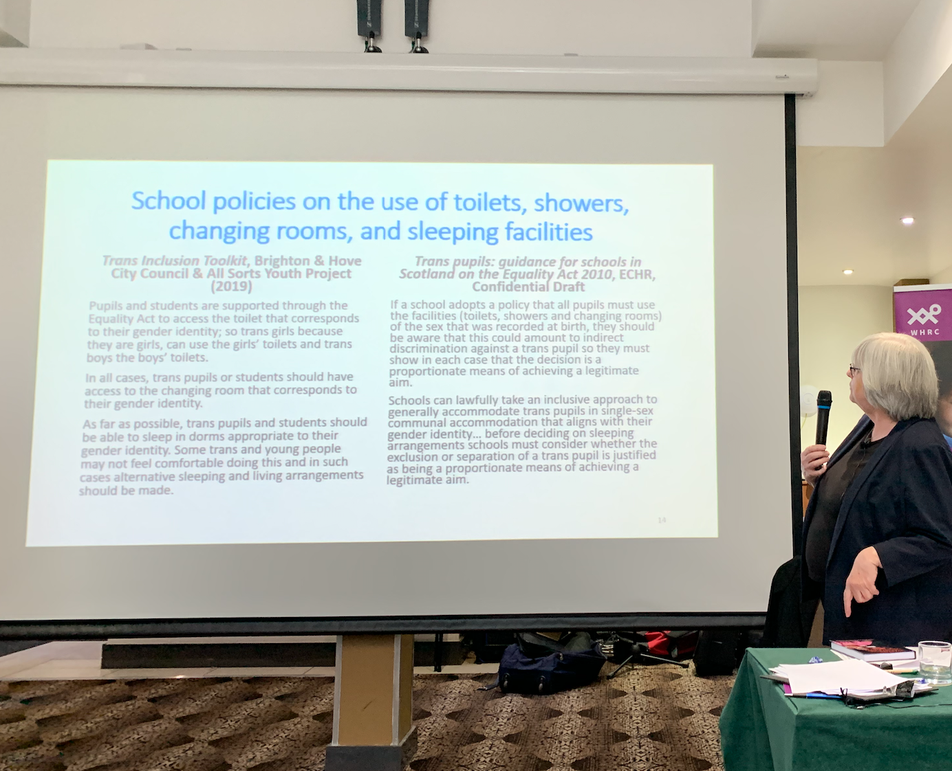 A woman from Scotland spoke about LGBT Scotland who provided guidelines for schools, and informed us that some Scottish women were campaigning to get those guidelines changed. There was some discussion about the meaning of ‘case by case’ but I’m afraid I got a bit lost.