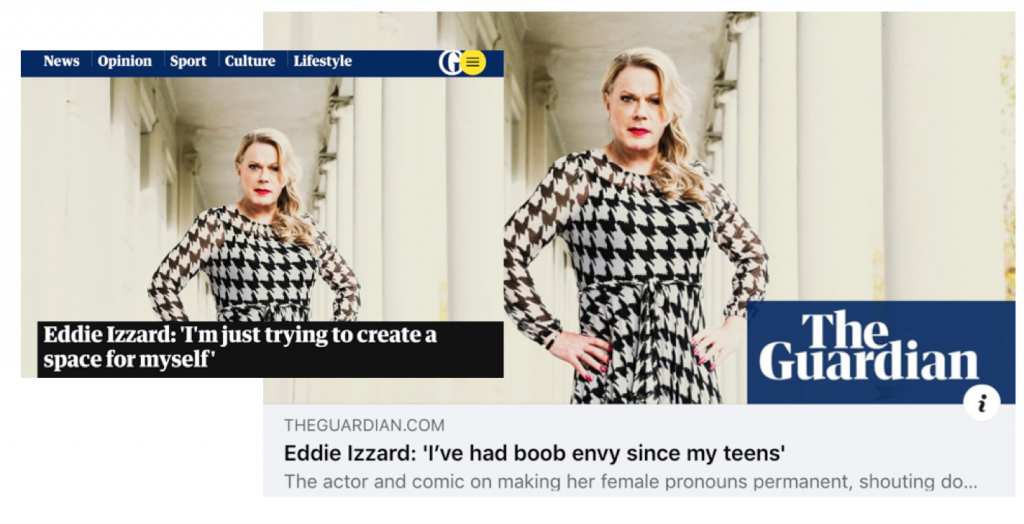 How dare the guardian have that image of Eddie Izzard saying he is a woman on its front page at the same time as reporting on Sarah Everard and other murders of women. It is obscene.