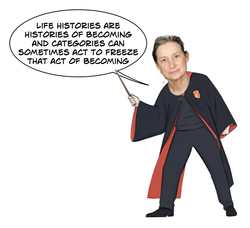 Back to Butler we go. Butler holds that all categories for humans are socially constructed. Stock thinks queer theorists have some interesting things to say about gender identity. She talks of sex-non-conforming bodies and behaviours. Non-performative transsexuals are touched upon. The concepts of demi-fluid and pangender are briefly explored.