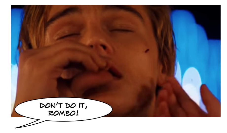 In the 1996 film version, where Danes’ eyes flicker open and her hand reaches for his cheek even as DeCaprio uncorks the poison, for one incredible moment I felt a genuine hope that it might all work out this time, and when- of course- it didn’t, my emotional response was astonishing. I literally sobbed. This is an excellent example of being immersed in a fiction. You know what’s happening isn’t true, but you respond as if it is.