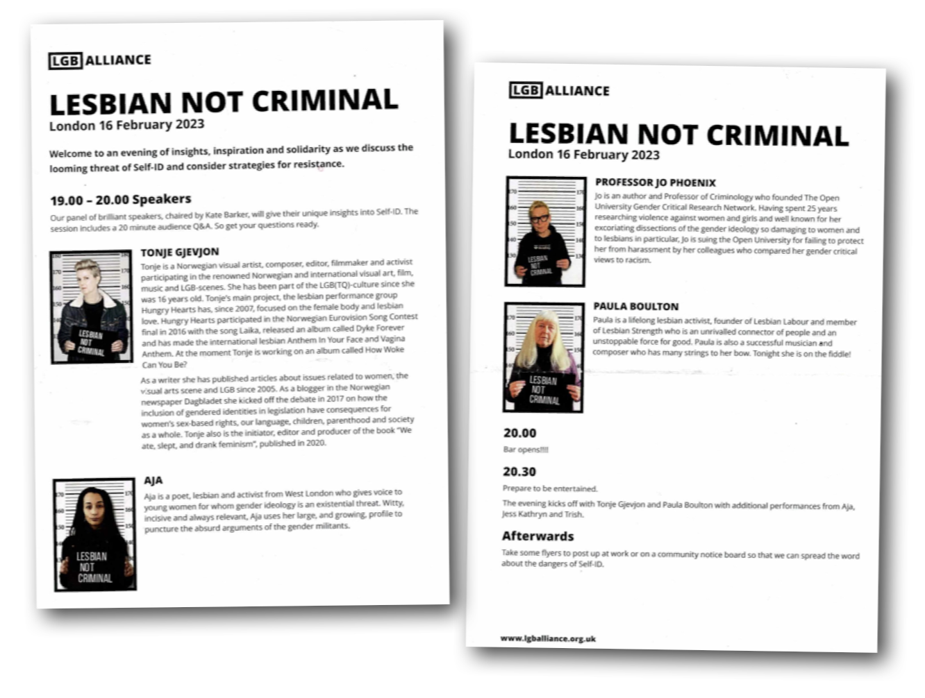 The ‘lesbian not criminal’ tour visited Edinburgh (Feb 13th) Cardiff (15th) and concluded in London on the 16th.