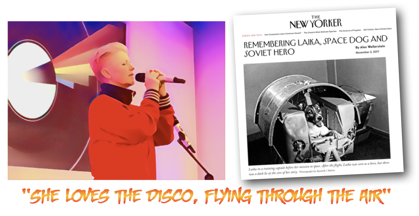 In 1957, a street dog named Laika became the first Earthling to orbit our planet when she was sent into space by the soviets. Laika, who was sent to certain death in Sputnik2, touched the imagination of Tonje as a girl, resulting in a song for Norway’s 2016 Eurovision Song Contest entry, about a lesbian dog who misses Moscow, her girlfriend & the disco. Weird? Yes. Brilliant? Also yes. Listen to the official music video here. Read more about Laika here.