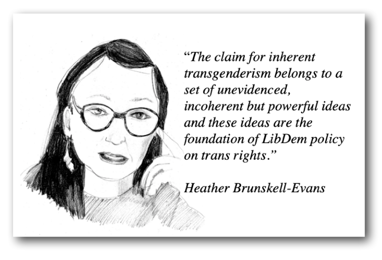 Terminology is important, asserted Heather, observing that “the claim for inherent transgenderism belongs to a set of unevidenced, incoherent but powerful ideas and these ideas are the foundation of LibDem policy on trans rights.”