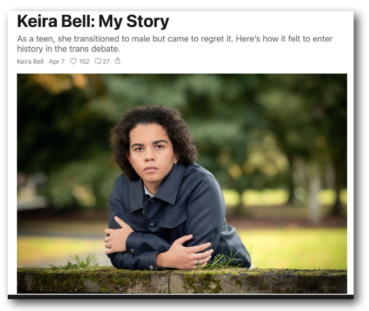 Bell’s “deep distress about her sexed body” and and psychological issues were not addressed and she was referred for puberty blockers after just three appointments. Heather tells us that GIDS “(allowed Keira) to run with the unrealisable fantasy that she could actually change sex”.