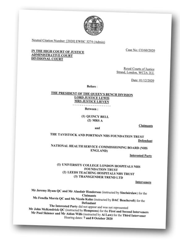 Stephanie’s written statement was accepted as evidence by the High Court during the judicial review mentioned earlier and commonly referred to as the ‘Keira Bell case’. In her statement she had mentioned vulnerable groups: autistic, gay & lesbian children and children with past trauma but her statement focused on girls because Keira was a girl. The judges acknowledged that the cultural context of Keira’s situation was important.