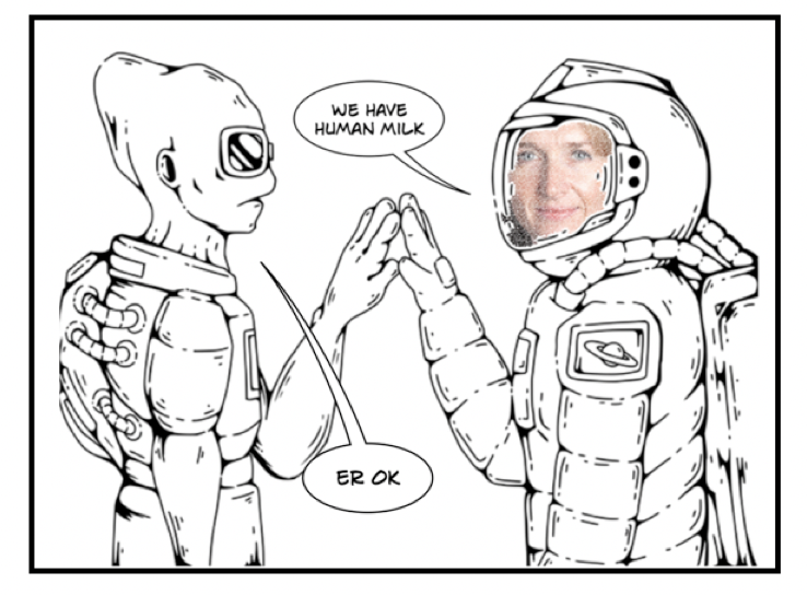 Not so ‘naturally’ then, but hey, it all sounds so easy. The author of the CS piece tells the reader she has a pituitary tumor which has caused her to produce milk since she was ten, and she now produces enough to feed 3-4 babies every day! Milk everywhere! So that’s nice. Perhaps it’s catching.